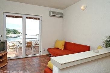 Dnevni boravak u kojem se nalaze 2 ležaja - sofa, mogu se razvući i po potrebi na jednom ležaju mogu spavati i 2 osobe.